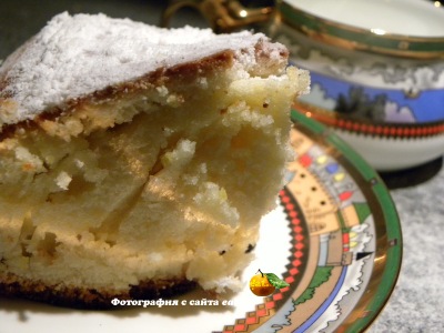 растопленное сливочное масло и снова взбиваем. Муку смешиваем с разрыхлителем и постепенно добавляем к творожной массе. Вымешиваем тесто, делаем из него шар, заворачиваем