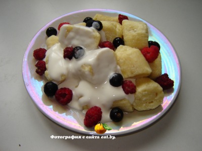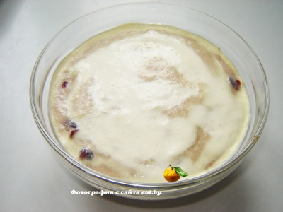 Манная запеканка с вишневым вареньем